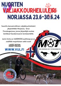 Norjassa nuoret musherit kerääntyvät ympäri maailmaa yhteen 23. – 30.6.2024. Leiri on suunnattu 13-18 -vuotiaille (2011-2006 syntyneet) kaikentasoisille vetolajien harrastajille.