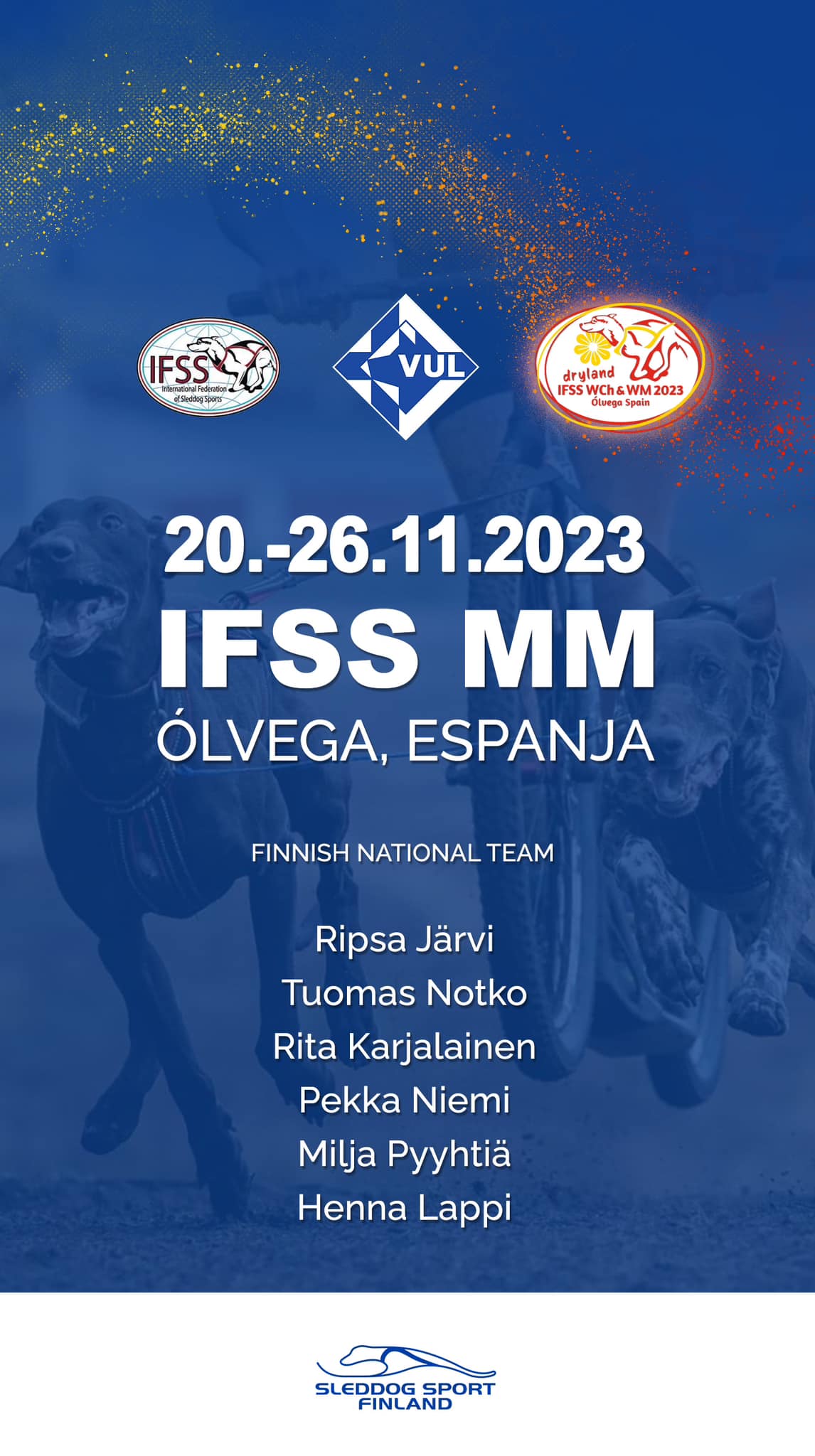 IFSS:n sulanmaan lajien MM-kilpailut järjestetään Espanjan Ólvegassa 20. – 26.11.2023.
