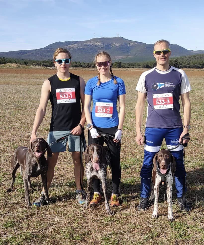 Suomen joukkueen aloittajana toimivat juoksuosuudella Tuomas Notko ja Ykä. Reiluun puoleen väliin asti Tuomas oli tullut lähellä kärkiporukkaa mutta loppumatkasta kärki paineli karkuun. Ensimmäisessä vaihdossa liikkeelle pääsivät kickbikellä Henna Lappi ja Saga. He saavuttivat nopeasti kaksi edellä mennyttä ja puhtailla ohituksilla nostivat Suomen sijoituksia. Ankkuriosuuden pyöräosuudelle pääsi meikäläinen Cela koiran kanssa. Cela on Pekan ja Elinan koira ja täytyy sanoa, että oli mahtava kokemus päästä kisaamaan koiralla, joka on voittanut maailmanmestaruuksia ja useita Suomen mestaruuksia. Vauhti oli meillä hyvää ja jo alkumatkasta tehtiin kaksi nopeaa ohitusta. Loppumatka tultiin hyvää vauhtia maaliin asti. Suomen sijoitus viestikilpailussa oli MM-10.