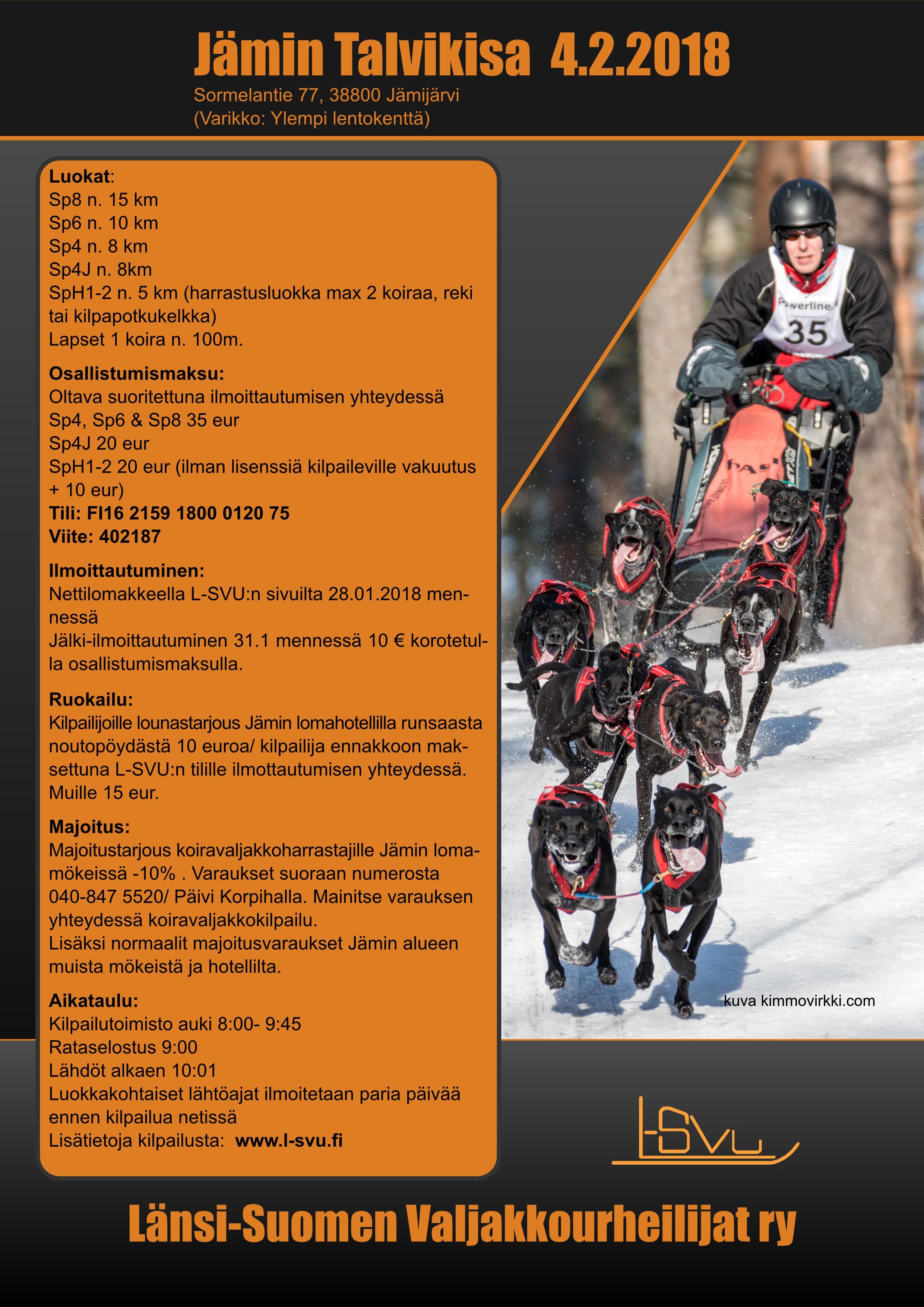 Kilpailun ajankohta on 4.2.2018. Kilpailupaikka on Jämijärvi. Kilpailun järjestää Länsi-Suomen Valjakkourheilijat.