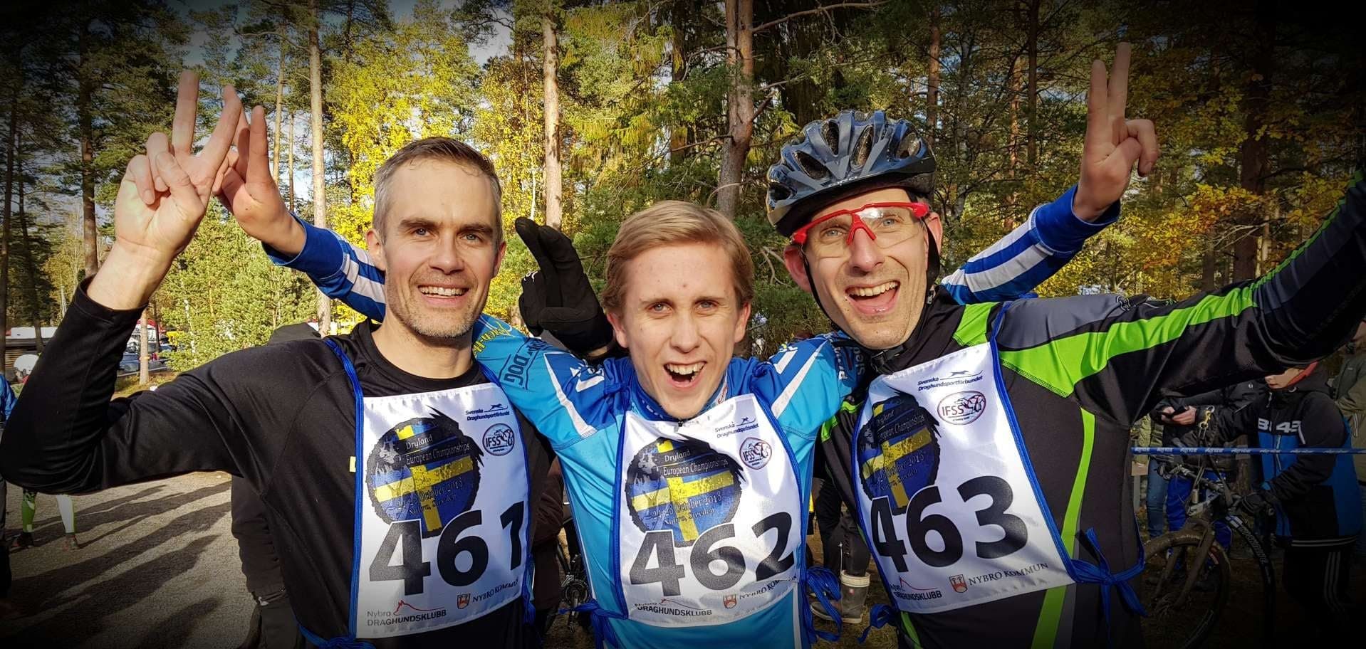 Kisat Nybrossa päättyivät sunnuntaina Suomen ykkösjoukkueen yllätyshopeaan uskomattoman taistelun jälkeen! Joukkueesssa kilpailivat Ari Rastas koirajuoksuosuudella, Tuomas Notko yhden koiran kärryosuudella ja Matti Laaksonen koirapyöräilyosuudella.