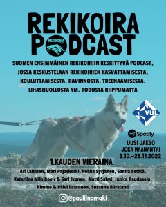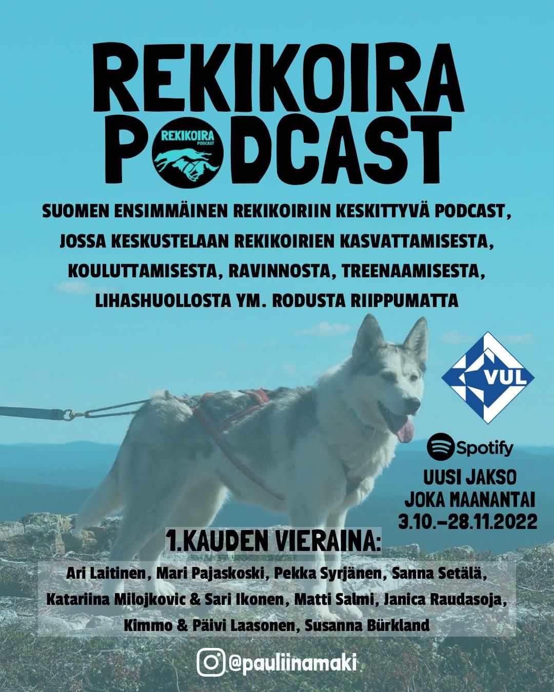 Pauliina Mäen ja VUL:n yhteistyössä toteuttama Rekikoirapodcast starttaa lokakuussa. Ensimmäinen jakso tulee kuunneltavaksi Spotifyssa 3.10. ja uusia jaksoja ilmestyy joka maanantai aina 28.11. saakka. Ensimmäisen kauden vieraina kuulaan Ari Laitista, Mari Pajaskoskea, Pekka Syrjästä, Sanna Setälää, Katariina Milojkovicia & Sari Ikosta, Matti Salmea, Janica Raudasojaa, Kimmo & Päivi Laasosta sekä Susanna Bürklandia.