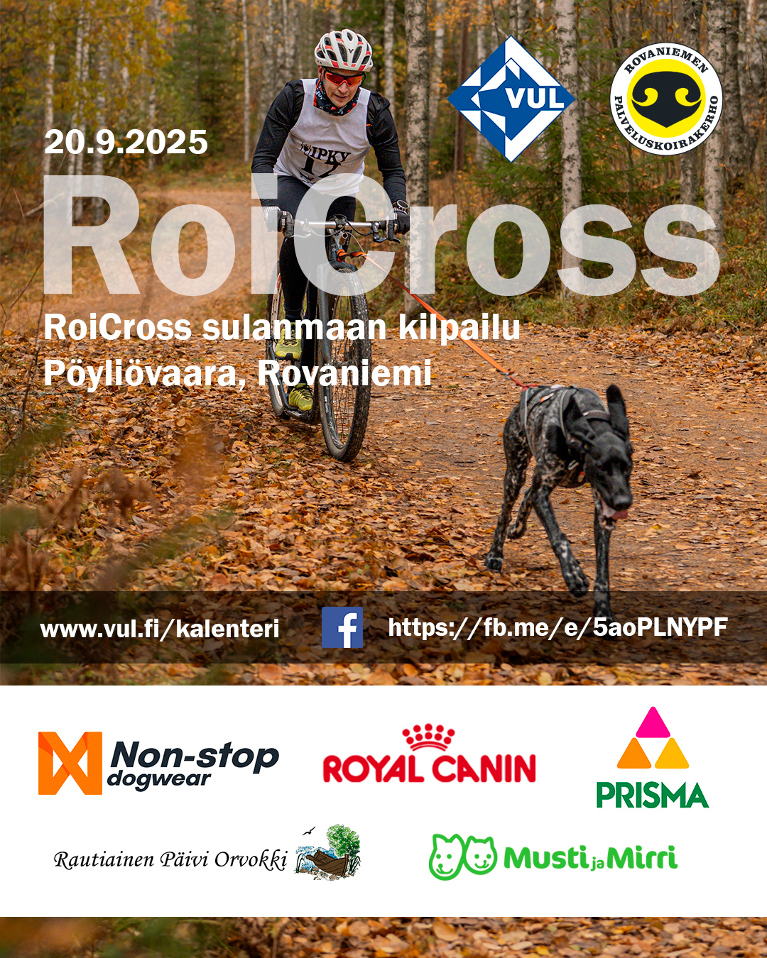 Maksuohjeet: Rovaniemen Palveluskoirakerho ry, FI11 4600 0010 7132 00, viite 8015