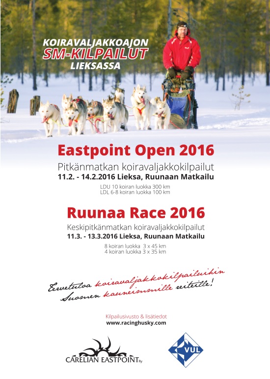 Pitkänmatkan valjakkoajon kilpailut, Eastpoint Open, ajetaan 11. – 14.2.2016, Lieksan Ruunaalla.