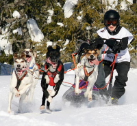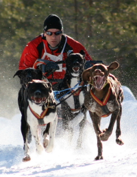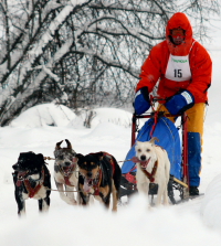 aktiivista pääpainon ollessa valjakkoajossa neljän koiran luokassa